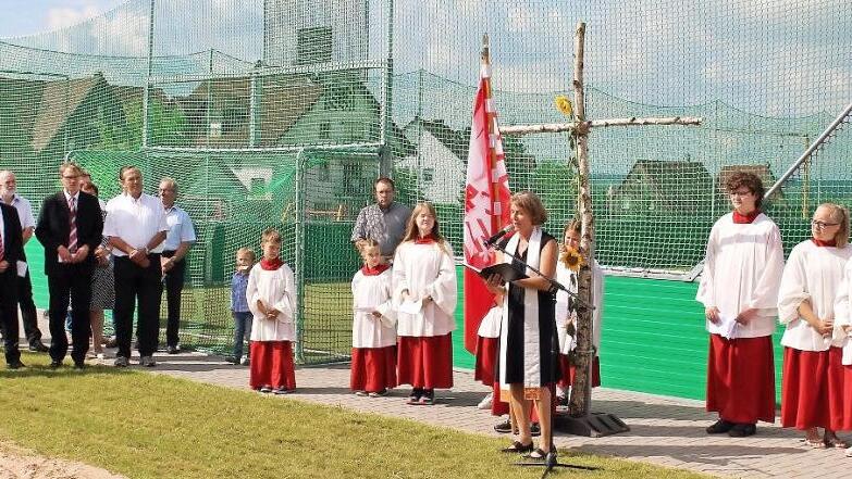 "Wie hält es denn das Christentum mit der Fitness? Ist Gott der Herr ein Sportler?" Die Fragen warf Pfarrerin Angelika Steinbauer auf, die zusammen mit dem Vorsitzenden des Seelsorgebereichs, Pfarrer Wolfgang Schmidt, dem neuen Gelände den kirchlichen Segen erteilte. Die Antwort gab Steinbauer gleich selbst: In der Bibel sei nichts dergleichen zu finden. Dennoch habe Gott ein ganz sportliches Ziel vor Augen: Die Liebe und die Freiheit unter den Menschen. Durch Sport lerne man, sich selbst zu fordern, die eigenen Grenzen zu erkennen, füreinander einzutreten und sich den Ball zuzuspielen, aber auch mit Enttäuschungen umzugehen.