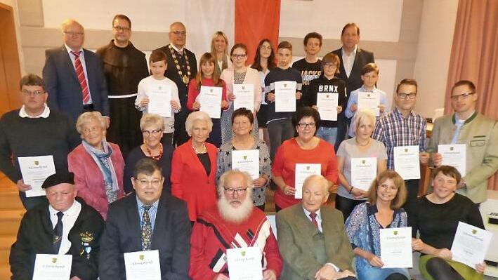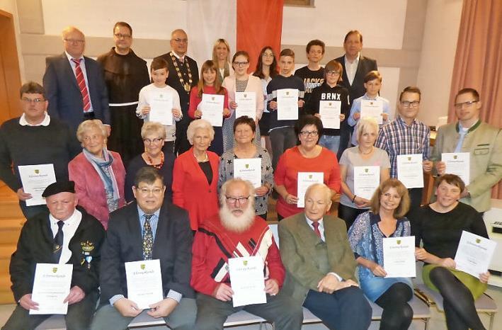 Geehrt wurden die Klassenbesten der vierten Klassen der Grundschule der Jahrgänge 2017 und 2018. Dies sind Anika Körber, Leon Lodes, Lene Roth, Florentine Brendel, Johannes Hölzel und Julian Haas. Geehrt wurden auch die klassenbesten Abschlussschüler der Mittelschule der Jahrgänge 2017 bis 2019. Dies sind Robin Neuner, Julia Brütting, Madlene Eckert, Julian Wölfel und ganz besonders Lea Leicht, die 2018 den besten Abschluss der Mittleren Reife im gesamten Landkreis Forchheim hatte. Kimberly Kupka bekam die Ehrenurkunde für den zweiten Platz der achten Klassen im Landkreis für den Vorlesewettbewerb in Englisch, Verena Koch und Moritz Pumpenmeier für ihre besonders erfolgreiche berufliche Aufstiegsqualifizierung und Sebastian Thiem als Bester mit der Traumnote 1,5 seines Agrarmanagement-Studiums.