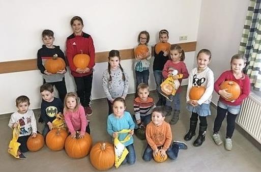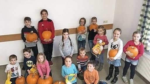 Die Kinder- und Jugendgruppe des Gartenbauvereins Schönbrunn, die "Rosenkinder", veranstalteten zu Halloween einen Kürbiswettbewerb. Die aus den im Frühjahr ausgegebenen Kürbiskernen gewachsenen Kürbispflanzen hatten die Kinder den Sommer über gepflegt und gegossen, um im Herbst dann einen möglichst schweren Kürbis zu ernten. Den schwersten Kürbis mit 11,7 Kilogramm erntete die vierjährige Ella Geus (vorne, Dritte von links). Platz zwei und drei gingen an Maria (vorne, Vierte von links) und Maximilian Zillig (vorne, Zweiter von links) mit 9,8 und 8,4 Kilogramm. Nach der Prämierung wurden die Kürbisse mit Unterstützung der Eltern ausgehöhlt und lustige oder gruselige Gesichter geschnitzt. So konnte jedes Kind einen Halloween-Kürbis mit nach Hause nehmen. Foto: privat