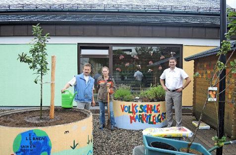 Mitglieder des Elternbeirats pflanzten Bäume im oberen und im unteren Pausenhof der Grund- und Mittelschule Marktleugast. Im Rahmen des Gesamtprojekts "Grüner Pausenhof" brachten sie nach nicht unerheblichen organisatorischen und logistischen Vorarbeiten von Elternbeirätin Maria Pittroff zwei von der Gärtnerei Friedrich aus Hohenberg gespendete Obstbäume in den Boden.