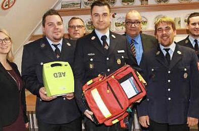 Ermöglicht wurde die Anschaffung in Höhe von über 2000 Euro durch eine Spende des Feuerwehrvereins. "Es ist eine sinnvolle und wichtige Zusatzausrüstung", findet Vorsitzender Dominik Hassa. Vor zwei Jahren hat die Feuerwehr Bammersdorf sich bei der 175-Jahr-Feier der Sparkasse Forchheim um einen Zuschuss für das medizinische Gerät beworben und eine Förderzusage erhalten. Die Eggolsheimer Geschäftsstellenleiterin Katja Büttner brachte nun den Spendenscheck über 750 Euro persönlich vorbei. Etwa 1600 Euro steuerte man aus dem Ersparten aus Vereinskasse dazu. Auch ein Notfallrucksack im Wert von etwa 300 Euro wurde angeschafft.