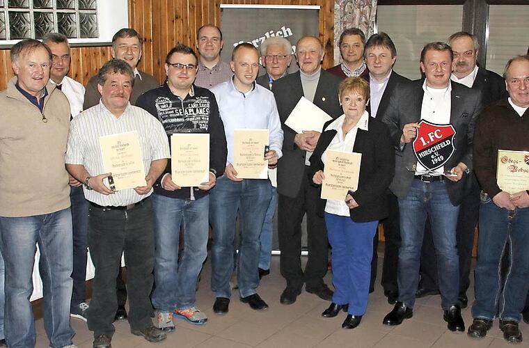 Die Ehrungen von Vereinsfunktionären standen am Samstagabend bei der Jahreshauptversammlung des 1. FC Hirschfeld im Mittelpunkt. Dabei wurden Edwin Neubauer und Michael Fehn zu Ehrenmitgliedern ernannt. Das Ehrenmitglied Theobald Heinlein wurde für seine fast 50-jährige Tätigkeit in der Vorstandschaft mit der Verdienstnadel in Gold mit Brillant und Kreuz ausgezeichnet.