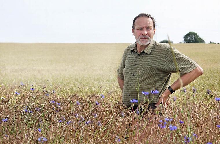 Harald Höhn bittet Landwirte um Hilfe. Sie sollen beim Einsäen des Wintergetreides freie Flächen in ihren Äckern lassen, um den Vögeln Nistplätze zu spenden.