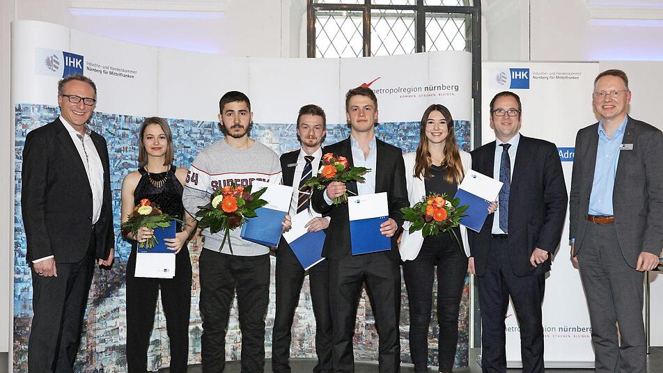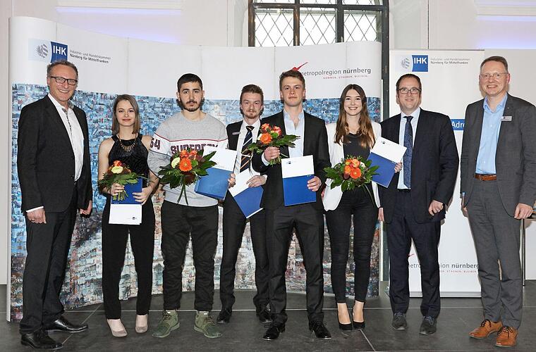Als Prüfungsbeste wurden ausgezeichnet: Niko Maisel, Bankkaufmann (VR-Bank Erlangen-Höchstadt-Herzogenaurach eG, Erlangen), Elisabeth Blabl, Industriekauffrau (Siemens AG, Erlangen), Roudi Haj Mousa, Verkäufer (Aral Center Peter Finsinger, Erlangen), Samuel Miller, Kaufmann im Einzelhandel (Aldi GmbH & Co. KG, Adelsdorf) und Sophia Rittmaier, Kauffrau für Büromanagement (Siemens Healthcare GmbH, Erlangen). red