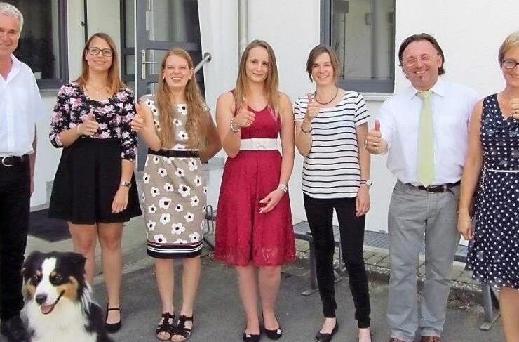 Die große Überraschung war die etwas andere Übergabe der Ausbildungszeugnisse durch "Bandit", dem Therapiehund der GbF Bad Kissingen. Thomas Schlereth von der Agentur für Arbeit sprach allen seine Glückwünsche aus und hob besonders hervor, dass alle Absolventen im Anschluss eine Weiterbeschäftigung haben. Er bedankte sich besonders bei den Mitarbeitern der GbF für ihr Engagement. In Anerkennung ihrer Leistungen erhielten die Verabschiedeten ein Geschenk von der Geschäftsführung der GbF. Für die beste Abschlussprüfung innerhalb der GbF Bad Kissingen bekam Lorena Renner eine Auszeichnung.