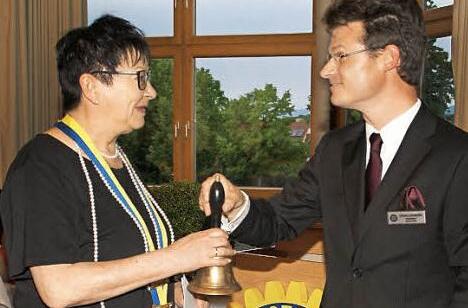 Jedes Jahr im Juni bekommen die Rotary-Clubs einen neuen Präsidenten. Präsidentennadel, -Kette und die Glocke wechselten beim Rotary-Club Haßfurt jetzt von Oliver Leuteritz auf Erika Stubenrauch. Viele Clubmitglieder und Gäste von Nachbarclubs waren dazu in die Königsberger Stadthalle gekommen.
