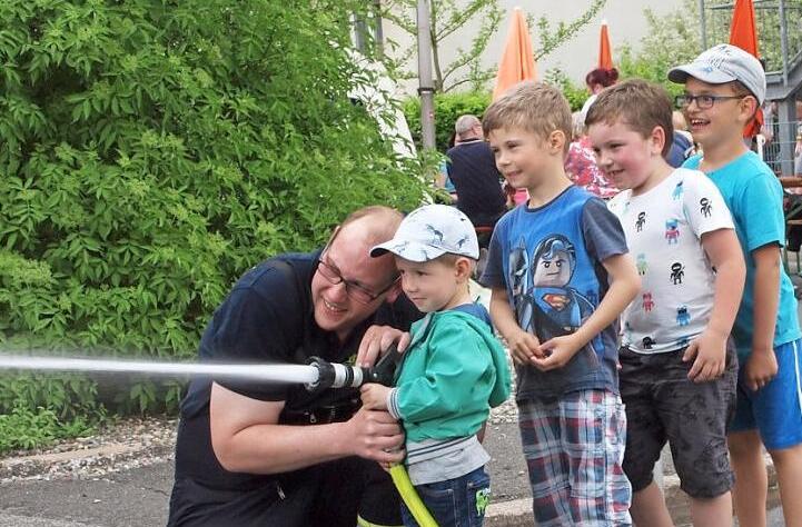 Die Kinder konnten sich außerdem in der Hüpfburg und bei dem von der Seubelsdorfer Feuerwehr organisierten Zielspritzen mit der Strahlrohrspritze vergnügen. Ebenso wie die vielen Eltern und Großeltern freuten sich Pfarrer George Thottankara, Bürgermeister Andreas Hügerich, Zweite Bürgermeisterin Sabine Rießner sowie Kindergartenreferent Christian Bauer und weitere Stadträte über die gelungenen Darbietungen der Kinder und das gute Miteinander der unterschiedlichen Generationen.