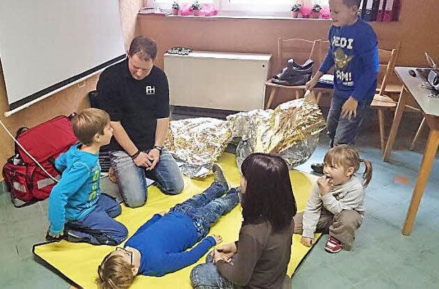 Erste-Hilfe-Kenntnisse spielerisch vermittelt: 15 Mädchen und Jungen der Kinderfeuerwehr Kupferberg lernten im Schulungsraum, wie man sich in einem Notfall richtig verhält.