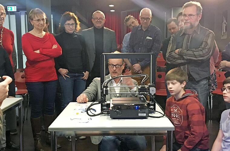 Hering erklärte die Einsatzgebiete und Möglichkeiten der neuen Drucker. Er ist sich sicher: "3-D-Druck wird bald das Herstellungsverfahren sein, das Serienproduktion ermöglicht." Sehr bildlich erklärte er das Vorgehen bei diesem Druckverfahren: "Als Kinder haben wir alle aus Knetmasse Würste gerollt und damit durch Aufeinandersetzen Blumentöpfe oder Vasen hergestellt." Ähnlich funktioniere der 3-D-Drucker, der beispielsweise "Kunststoff-Würste" übereinanderlege und dadurch Formen entstehen lasse. Allerdings reproduziere er nur Daten, weshalb man mit einem Drucker allein wenig anfangen könne. Man brauche auch Computerdateien der 3-D-Modelle.