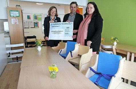 "Essen ist bei uns nicht nur reine Nahrungsaufnahme, sondern auch eine pädagogische Aufgabe", erklärt Kindergartenleiterin Monika Kaiser. Es fängt beim "Schüsselsystem" an, wo sich die Kinder am Tisch selbst bedienen. Hier wird der Umgang untereinander geschult. Doch die Möblierung im Essraum war dafür nicht geeignet. Die Tische und die Bestuhlung waren teilweise zu klein, sie wurden angepasst und Ersatzanschaffungen getätigt. Dafür gab die Hallerndorfer Volksbank eine Spende in Höhe von 500 Euro, vom Landgasthof Rittmayer in Willersdorf gab es 450 Euro, und der Elternbeirat steuerte 300 Euro dazu.