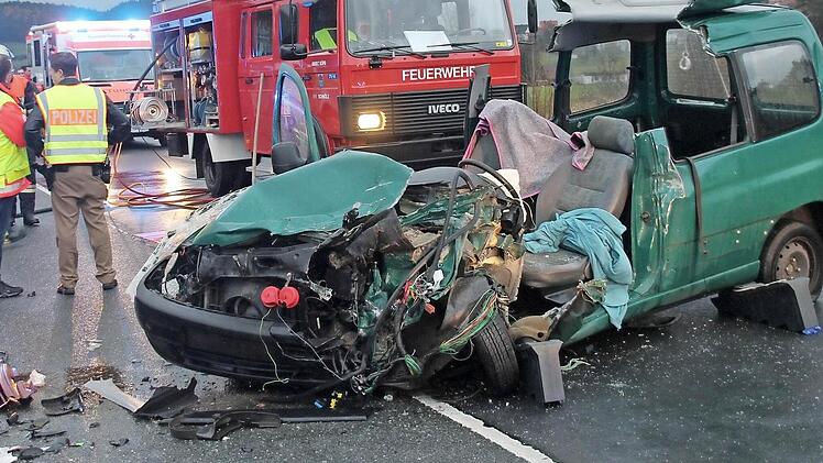 Weidhausen — Schwere Verletzungen erlitt eine 53-jährige Frau am Dienstag gegen 15.30 Uhr bei einem Frontalzusammenstoß auf der Bundesstraße 303. Die 53-Jährige fuhr von Sonnefeld in Richtung Kronach und überholte einen Lastwagen. Dabei übersah sie einen entgegenkommenden Kleinlaster. Ihr Auto wurde zerstört, der Kleinlaster, gegen den ihr Citroën prallte, wurde erheblich beschädigt. Die Bundesstraße war rund zwei Stunden gesperrt. Die Feuerwehr musste die eingeklemmte Frau aus ihrem Auto befreien. Foto: Herbert Fischer