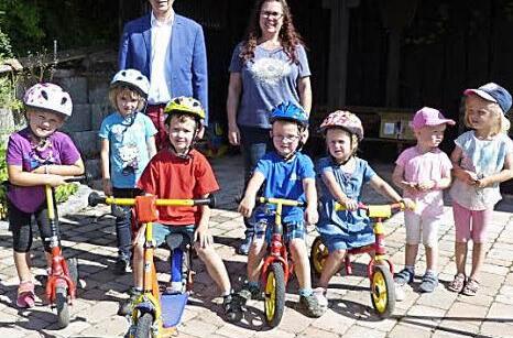 Michaela Stark lobte die Initiative des Marktleugaster Bürgermeisters und sagte zu, dass die Erzieherinnen darauf Acht geben werden, dass die Kids sie beim Roller- oder Radfahren immer aufsetzen.