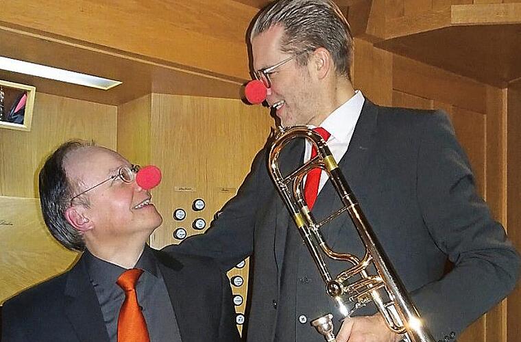 Beim Faschingskonzert am Sonntag, 17. Februar, um 19.30 Uhr in der Herz-Jesu-Stadtpfarrkirche werden beliebte Melodien aus Oper, Operette, Film und Musical erklingen. Roman Riedel, Posaunist des Bad Kissinger Kurorchesters und Stadtkantor Burkhard Ascherl werden ihr Publikum unter anderem mit "Toreador-Song" von Bizet, "Triumph-Marsch" aus Verdis Oper "Aida", "Grüß mir mein Wien" von Kálmán, "Kaiser-Walzer" von Strauß, "The Entertainer" von Joplin, "Over the Rainbow", "Pink Panther" und anderen erfreuen. Karten gibt es an der Abendkasse ab ca. 19 Uhr. Foto: Brigitte Ascherl
