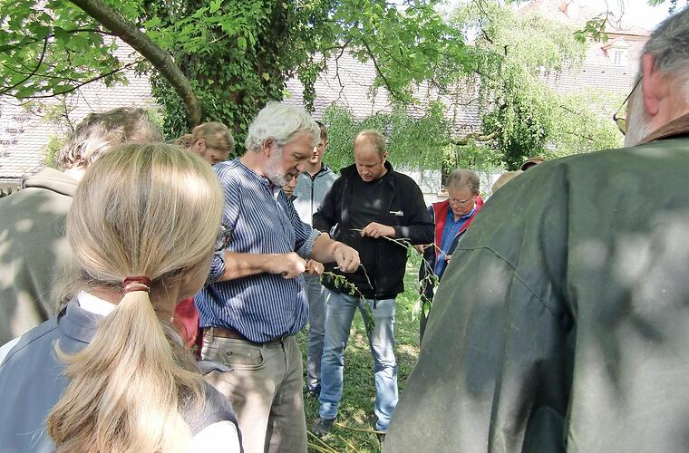 Hans-Joachim Bannier, Mitglied des deutschen Pomologen-Vereins, zählt zu den inzwischen selten werdenden Obstbaumkundlern und ist Experte für Apfel- und Süßkirschensorten. Er lehrt, wie man den Wuchs der Obstbäume verstehen und daraus mittelfristig zeitsparende Pflegemaßnahmen ableiten kann. Im Zuge des Projekts "Wertschätzungskampagne für die Obstbäume der Region" konnte die Öko-Modellregion Oberes Werntal Josef Weimer nochmals für Obstbauseminare 2019 auf Schloss Gut Obbach gewinnen. Er lebt die Tradition der früheren Obstbauwanderlehrer und zählt im deutschsprachigen Raum zu den anerkannten Spezialisten für den Landschaftsobstbau. Das Besondere an den Kursen ist die Fülle des gebündelten, praxistauglichen und auf andere Bäume übertragbaren Fachwissens, das Josef Weimer anschaulich vermittelt. Die Teilnehmer erhalten eine persönliche Betreuung, überzeugende Argumente für den Landschaftsobstbau und eine leckere Verpflegung von Partnern der Region.