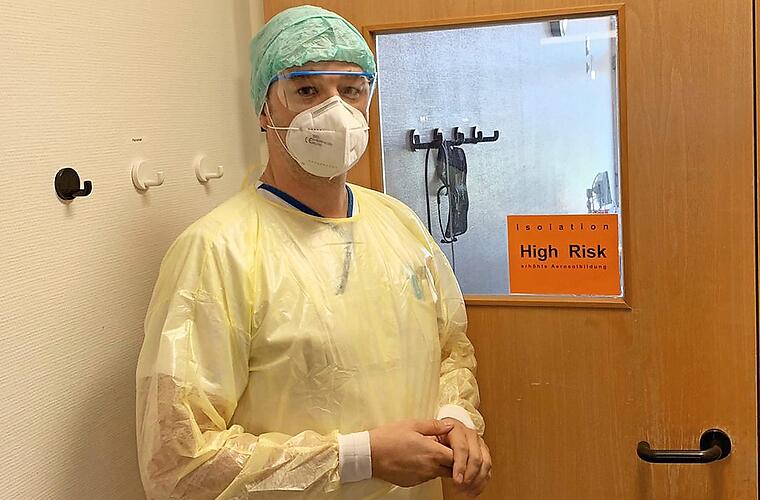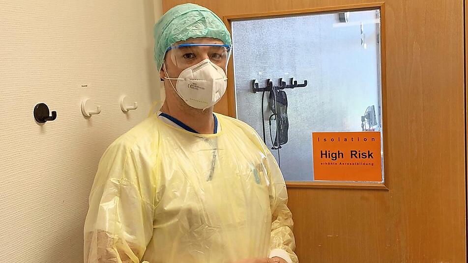 Während der Arbeit ist die Mund-Nasen-Maske für Swen Klapperstück eine ständige Begleiterin. Auch andere persönliche Schutzausrüstung - Handschuhe, Kittel und Kopfhaube - sind für den 43-Jährigen seit vielen Jahren gewohnte Dinge. Swen Klapperstück ist der Leiter der Covid-19-Normalstation des Klinikums Coburg. Schon vor der Pandemie durch das Corona-Virus war die Station 52 die Isolierstation des Krankenhauses an der Ketschendorfer Straße. "Die infektiösen Patienten aller Fachrichtungen werden bei uns betreut." Das sind unter anderem Menschen mit TBC, Noro- und Rotaviren sowie anderem mehr.