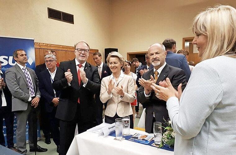Dass die SPD sich für Steuererhöhungen einsetzt, will von der Leyen "angesichts voller Staatskassen" nicht einleuchten. Stattdessen müsse auf Entlastung für Familien gesetzt werden, Baukindergeld möchte die Union wieder einführen, den Mittelstand stützen, der auch die Hauptlast der Ausbildung trägt. "Wir wollen wieder stärkste Kraft werden", gibt sie als Marschrichtung aus. Dazu gehöre auch, dass Hans Michelbach hier in der Region wieder die Mehrheit der Stimmen als Direktkandidat bekommt. Das sei der Beitrag, den alle im Saal leisten können.