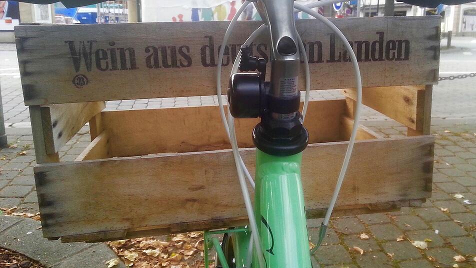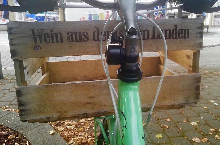 "Wein aus deutschen Landen" kann man in Supermärkten in der Innenstadt sehr wohl kaufen. Dass aber die Abnahmemengen so niedrig sind, dass der Weinhändler die Ware mit dem Drahtesel anliefert, ist eher unwahrscheinlich. Vielleicht handelt es sich um einen Käufer, der seine Weine - vom Heimtransport bis hin zur Lagerung in seinem Weinkeller - stilgerecht behandeln will. Jedenfalls spricht seine alte und schöne Weinkiste am Fahrrad dafür. Übrigens: Im Handel werden die Weinkisten angeboten mit folgender Werbung: "Unsere klassische Weinkiste - wie frisch vom Winzer mit dem Aufdruck ‚Wein aus deutschen Landen'. Man könnte an dieser Stelle einen Roman über die Herkunft dieser Kiste schreiben. Muss man aber auch nicht. Wir trauen dir durchaus zu, dass du schon selbst ganz genau weißt, was du damit machen willst". Das wusste unser "Weinkisten-Radler" bestimmt ganz genau.