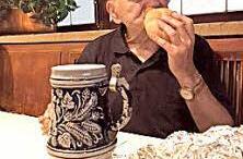 Zeit, weil er sich die oft sehr üppig mitgebrachten Speisen in Genießergeschwindigkeit einverleibt, und Platz am Tisch, weil das Aufgetischte meist locker mal für eine Kleinfamilie reichen würde. Aber er braucht zudem dreidimensionalen Platz - also nicht nur Länge und Breite - sondern auch Höhe. Denn um das Brotzeit-Ritual richtig zu zelebrieren, steht sein Stammhumpen auf einem Sockel aus vielen gestapelten Bierfilzen. Und dafür hat der Brotzeiter, der an Heiligabend seinen 80. Geburtstag feierte - natürlich mit einer Brotzeit - eine pfiffige Erklärung parat: "Ich möchte mein Bier auf Augenhöhe genießen."