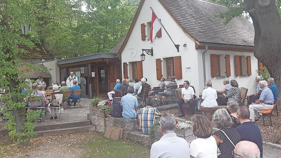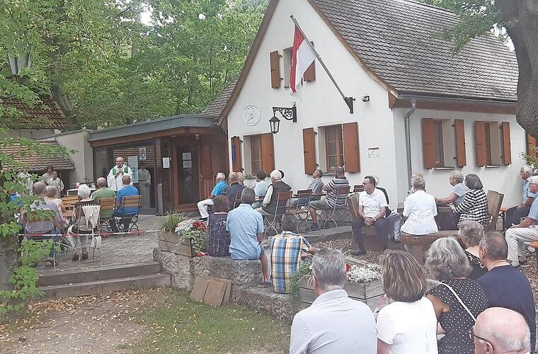 Vorausgegangen war ein stimmungsvoller Gottesdienst unter den Bäumen der Anlage, zu dem nicht nur die Freunde des Kellerbergs am Sonntag strömten. Gerhard Wirkner gestaltete das Ambiente zu einem Gottesdienstort. Erstmals verwendete der Mesner dabei ein von Gisela Fiederling gewebtes Altartuch.