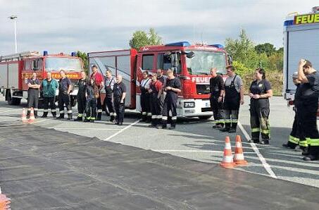 21 Feuerwehrmänner und -frauen aus neun Feuerwehren des Landkreises Kronach absolvierten ein Fahrsicherheitstraining für Fahrer von Feuerwehrfahrzeugen in Berg, Landkreis Hof. Hier galt es, Gefahrensi...