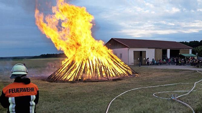Trotz des WM-Spiels Deutschland gegen Schweden war das Sonnwendfeuer der Dorfgemeinschaft