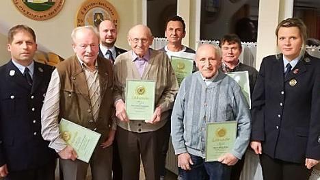 Im Anschluss gab es einen Ehrungsreigen, bei dem neben dem scheidenden Kommandanten André Stenglein die beiden Jugendbetreuerinnen Tanja Stenglein und Lisa Kasseck geehrt wurden. Beide erhielten aus den Händen von Kreisbrandrat Oliver Flake und Kreisjugendwart Christian Wolfrum die Ehrennadel der Jugendfeuerwehr Oberfranken, verliehen vom Bezirksfeuerwehrverband Oberfranken e. V. für ihre Verdienste um den Aufbau und die Förderung der Jugendfeuerwehren in Oberfranken. Die Feuerwehr Niedermirsberg stellt eine der stärksten Jugendgruppen im Kreisfeuerwehrverband Forchheim. Die anschließende Jahreshauptversammlung wurde vom ersten Vorsitzenden des Vereins, Thomas Redel eröffnet und geleitet. Bei seinem Rückblick auf 2017 ging er auf die zahlreichen Erneuerungen sowie auf die stattgefundenen Feste ein. Nach dem Totengedenken folgte der Kassenbericht durch den Kassier Johannes Kügel, welcher einen soliden Kassenstand nachweisen konnte. Die Entlastung erfolgte daher einstimmig. Es folgten Ehrungen für 40, 60 und 70 Jahre Mitgliedschaft im Feuerwehrverein. Geehrt mit einer Urkunde und einem Krug wurden für 40-jährige Mitgliedschaft Heinz Kügel und Georg Längenfelder, für 60-jährige Mitgliedschaft Johann Kropfelder und Rudi Männlein und für 70-jährige Mitgliedschaft Anton Kraus. Bei der anschließenden Wahl der Vorstandschaft wurden neu als Beisitzer André Stenglein, Christoph Leikam und Thomas Betz gewählt. Als Nachrücker wurde Patrick Hack in den Vergnügungsausschuss gewählt.