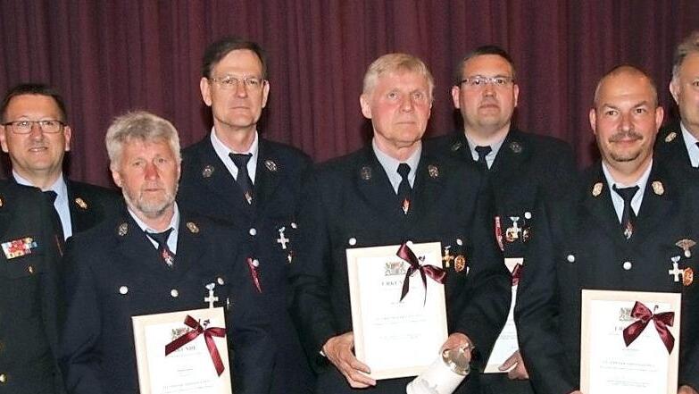 "Sie leisten einen hervorragenden Dienst an der Allgemeinheit", würdigte der Landrat die Verdienste. Für 25-jährige Dienstzeit wurden der ehemalige Drosendorfer Kommandant Matthias Brehm, der Eggolsheimer Gerätewart Hendrik Britz, der Tiefenstürmiger Kommandant Udo Burkard, Helmut Dötzer von der FFW Tiefenstürmig und Jürgen Winkler aus Drügendorf ausgezeichnet. Ehrenzeichen für 40 Jahre aktiven Dienst erhielten Gerd Kapp aus Rettern und Martin Saffer aus Unterstürmig. Für den würdigen Rahmen der Verleihung sorgte die Marktgemeinde Eggolsheim. Bürgermeister Claus Schwarzmann (BB) dankte den Geehrten für ihr Engagement. "Die Marktgemeinde ist im Feuerwehrwesen sehr gut aufgestellt", meinte der Gemeindechef.