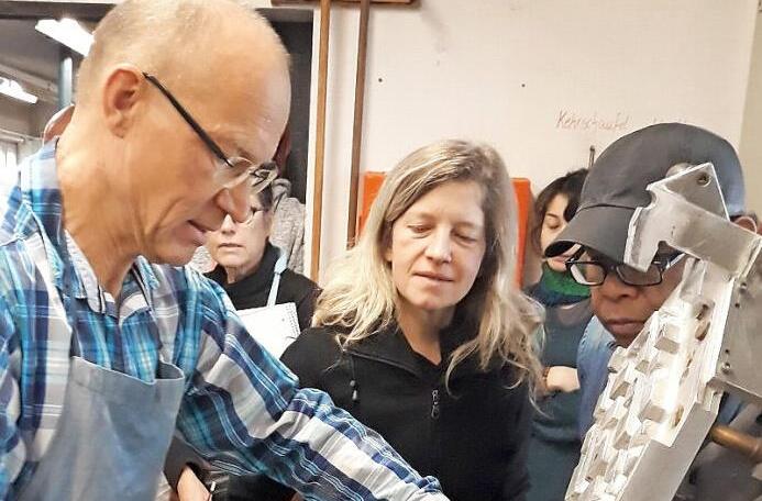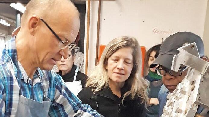 theresa schiffl Gespannt schauen die Schüler der Berufsfachschule für Flechtwerk Andreas Dreitz zu, wie er geschickt die Rattanzweige in die Form seiner selbsterfundenen Maschine einspannt. Es soll ein Teppichklopfer mit der typischen Sonnenform werden.