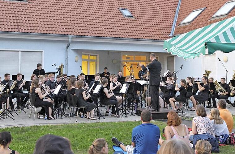 Unter dem Titel "Musik an einem Sommerabend" lockte die Stadtjugendkapelle zum achten Mal musikbegeisterte Zuhörer auf das Vereinsgelände in Herzogenauarch. Die genossen dann einen musikalischen Abend unter freiem Himmel. Ungefähr 300 Musikfreunde waren mit Decken, Campingstühlen und Picknickkörben bestens auf einen Abend voller sommerlicher Klänge vorbereitet.