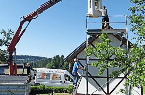 Nach dem Bau der Flurkapelle in Hinterrehberg im Jahr 2010 und der feierlichen Einweihung im Mai 2011 hat das Kleinod am beliebten Mühlenwanderweg jetzt noch einen Glockenturm erhalten. Gebaut haben diesen Alfred und Marco Weber. Das Aufsetzen übernahm dankenswerterweise Stefan Hanke mit seinem Autokran. Für die Erledigung der Dachdeckerarbeiten trug Dominik Cherbiat Sorge. Der Ehrenobmann des Frankenwaldvereins Neuensorg, Bruno Tittel, bedankte sich mit einer Brotzeit herzlich bei allen für ihr uneigennütziges Engagement.