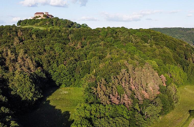 Doch das Wiederaufforsten mit zukunftsfähigem Mischwald ist unter den aktuellen klimatischen Bedingungen nicht so einfach. "Wir konnten seit drei Jahren praktisch nichts mehr anpflanzen, weil es zu trocken war", erklärt der Amtsleiter. Das Problem kennt Morgenroth aus eigener Erfahrung. Sie versucht es selbst, überwiegend mit heimischen Baumarten. Esskastanie, Walnuss, Elsbeere und Speierling hat sie schon vor Jahren gepflanzt. Der Waldumbau sei aber eine Zukunftsaufgabe für Jahrzehnte. Sie sieht jedoch bei sich auf dem Jura, dass die vor über 100 Jahren gepflanzten Fichten- und Kiefernwälder immer noch dominieren. Und sterben. "Die Fichte wird sich nicht halten können, die haben wir schon verloren. Die Kiefer folgt", stellt Morgenroth fest. Auch die Buche sei betroffen.