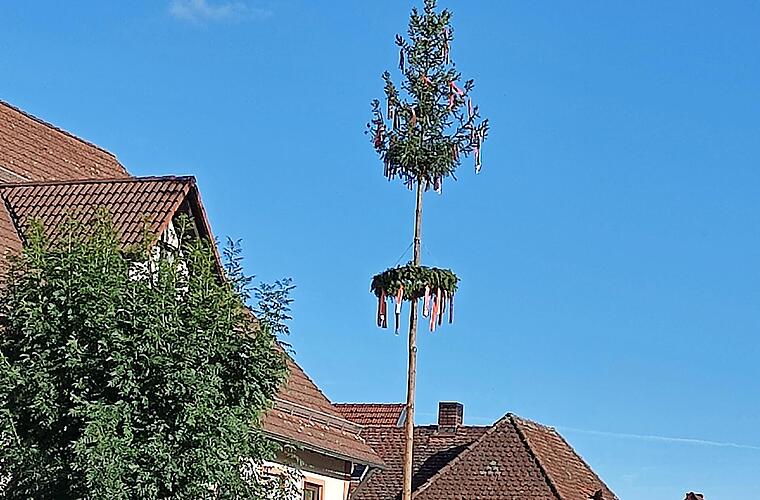 Traditionell zur Kirchweih stellte die Feuerwehr zusammen mit dem Stammtisch der „Obaladara“ schon seit mehreren Jahrzehnten ihren Kerwasbaum auf. Am Nachmittag wurde eine stattliche Fichte von mehr als 20 Metern Höhe gefällt und mit dem alten John-Deere-Traktor des Feuerwehrkommandanten Horst Scheuring zum Schmücken zum Dorfplatz gefahren. Ein Kranz wurde gebunden. Die Helfer versorgte die Zweite Ortsbäuerin Lore Kraus mit Kaffee und frischgebackenen Küchla.