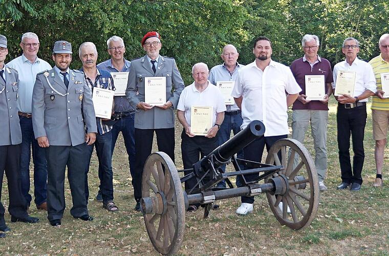 Zu ihrem 40. Jubiläum hat die Reservistenkameradschaft (RK) Hausen mit ihren Vorsitzenden Markus Kutil und Stephan Singer ins „Hundevereinsheim“ Hausen eingeladen.