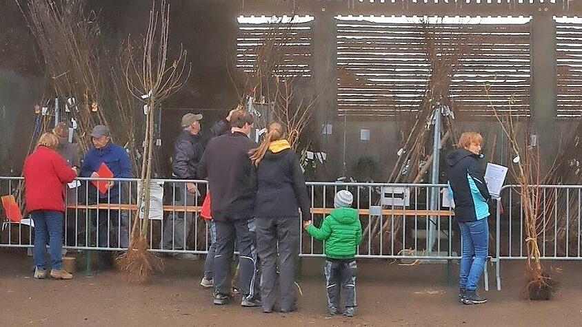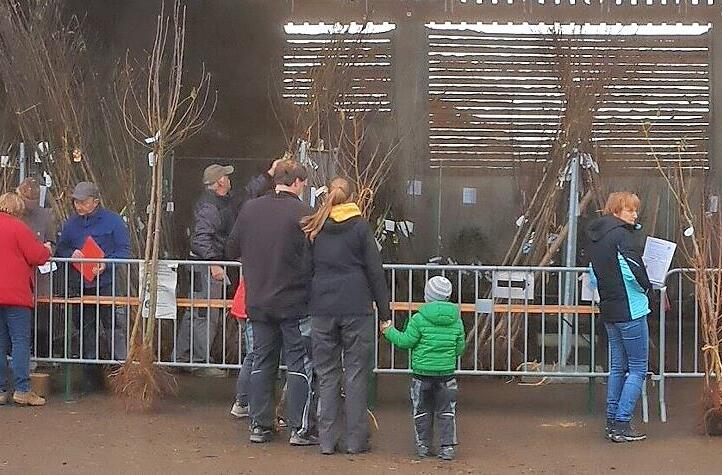 So konnten insgesamt schließlich 140 junge Hochstämme, 360 Halbstämme, 180 Buschbäume und 170 Säulenbäume an die Bevölkerung verschenkt werden. Vorangegangen war im September eine Bedarfsabfrage über die Gemeindezeitung. Rund 230 Bürger hatten darauf reagiert und binnen weniger Tage das darin enthaltene Bestellformular für die Obstbaumaktion bei den Obst- und Gartenbauvereinen abgegeben.