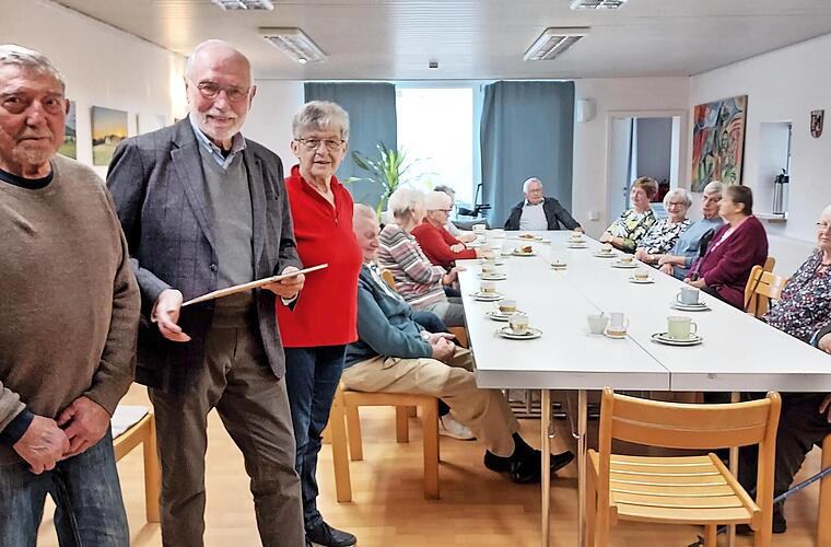 Alfons Galster überbringt beim VG-Café die Anerkennungsurkunde von der Hauptabteilung Seelsorge des Erzbistums an das „Haus der Begegnung“ in Kirchehrenbach als Ort der Hoffnung.