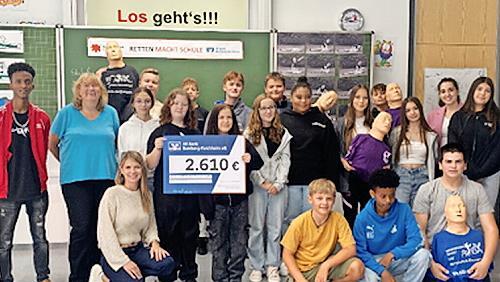 Im Rahmen der Aktion „Woche der Wiederbelebung“ wurde die Ausstattung durch die Filialleiterin Verena Keller und deren Mitarbeiterin Marisa Schüler an die Schule übergeben. Speckner ergriff die Gelegenheit – dank der Umorganisation des Stundenplans durch Konrektor Frank Löser – und führte für alle Schüler der siebten bis zehnten Klassen die Ausbildung in der Laien-Reanimation durch.