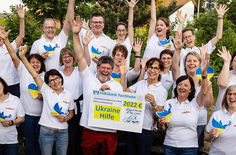 Allen Grund zu Jubeln hatte der Chor Schabeso und die Organistin Elisabeth Roppelt aus  Eggolsheim  nach dem erfolgreichen  Benefizkonzert  für die Ukraine-Hilfe in der Martinskirche.