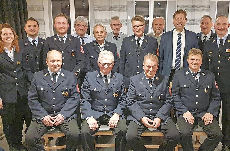 Ebenfalls gratulierten Kommandant Stefan Siebenhaar, sein Stellvertreter Johannes Kaul, Kreisbrandmeister Hofmann und Bürgermeister Ernst Strian (Dem.).