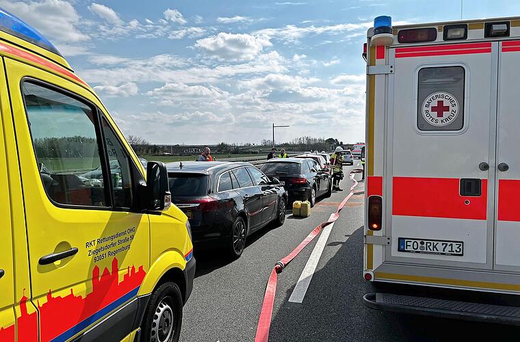 Nachdem ein Fahrzeug auf der linken Spur abgebremst hatte, fuhr ein zweiter Wagen hinten auf, wobei drei Personen mittelschwer verletzt wurden. Zwei weitere Fahrzeuge kamen dahinter zum Stehen. Diese wurden laut Nachrichten- und Fotoagentur News5 allerdings von einem Opel-Fahrer zu spät wahrgenommen, so dass dieses Auto mit Coburger Zulassung in die Fahrzeuge krachte.