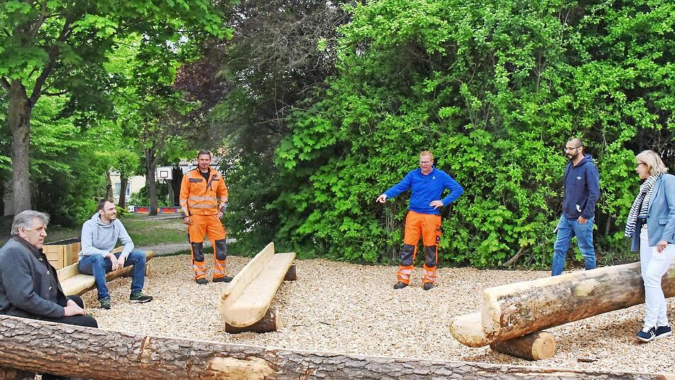Zur Umsetzung trugen der Elternbeirat und der Bauhof tatkräftig bei. Bauhofleiter Ralf Kraus und sein Team bauten Bäume aus dem Gemeindewald zu Sitzbänken um und richteten damit das Klassenzimmer ein. Eingerahmt wird das Ganze von großen Pflanzkübeln, die nach den Pfingstferien von den Schülern unterschiedlich bepflanzt werden sollen.