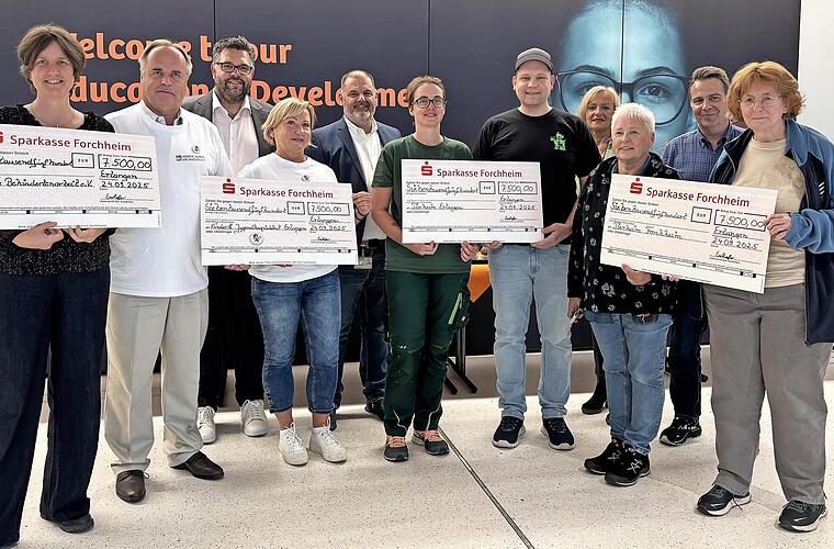 Im Namen der Mitarbeiter überreichten Vertreter von Siemens Healthineers bei einer Veranstaltung in Erlangen Spendenschecks in Höhe von insgesamt 30.000 Euro an vier gemeinnützige Einrichtungen aus der Region.