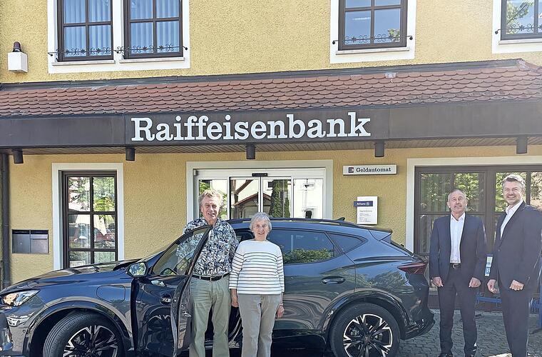 Bei der Verlosung des Gewinnsparvereins der Raiffeisenbank Fränkische Schweiz konnte sich Anton Poser aus dem Waischenfelder Gemeindeteil Saugendorf besonders freuen. Er hat das große Los gezogen und gewann den Hauptgewinn, einen sCupra Formentor E-Hybrid im Wert von über 45.000 Euro .