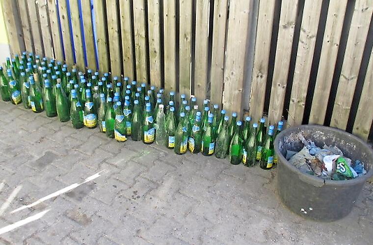 Nach einigen Wetterkapriolen hat Lothar Scharf mit Unterstützung von Augustinus Och bei einer ehrenamtlich durchgeführten Flussbettsäuberung der Leinleiter ab dem Ortsende von Unterleinleiter bis etwa 800 Flussmeter in Richtung Gasseldorf sage und schreibe über 110 leere Weinflaschen und jede Menge weiteren Restmüll eingesammelt. Stellt sich die Frage, wer den ganzen Wein getrunken hat. "Die Geschichte ist sehr kurios, da alle Flaschen verschlossen in den Bach auf die Reise durchs Leinleitertal geschickt werden", meint Alwin Gebhardt (DWV), Bürgermeister von Unterleinleiter . "Wer hier regelmäßig diesen Trunk zu sich nimmt und dann die Beweismittel entsorgt, entzieht sich meiner Kenntnis", sagt Gebhardt. Auf die Idee, die Flaschen in einem Altglascontainer zu entsorgen, ist der Umweltfrevler anscheinend noch nicht gekommen. Unterdessen hofft Lothar Scharf, "dass jetzt Ruhe eingekehrt ist".