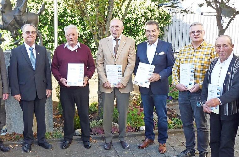 Weiterhin wurde eine bronzene Stiftertafel zur Georgenstatue vor der Dreikönigskirche Burk beauftragt und kürzlich angebracht.
