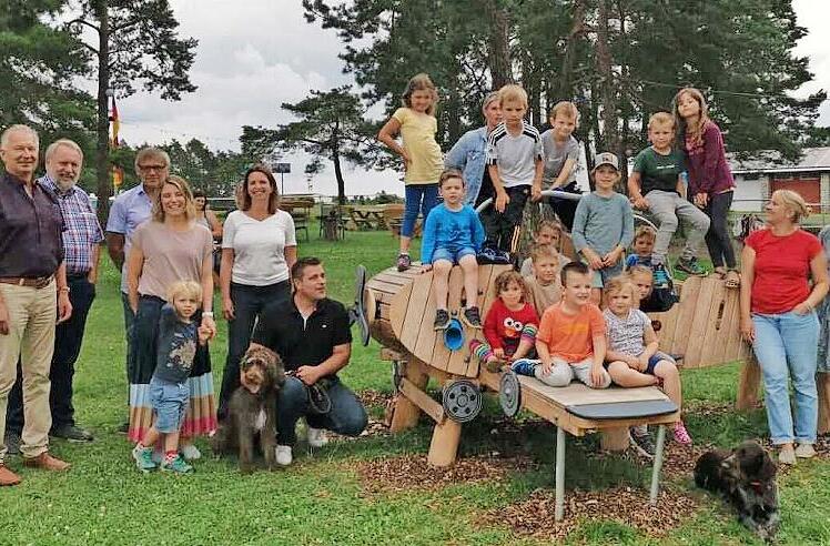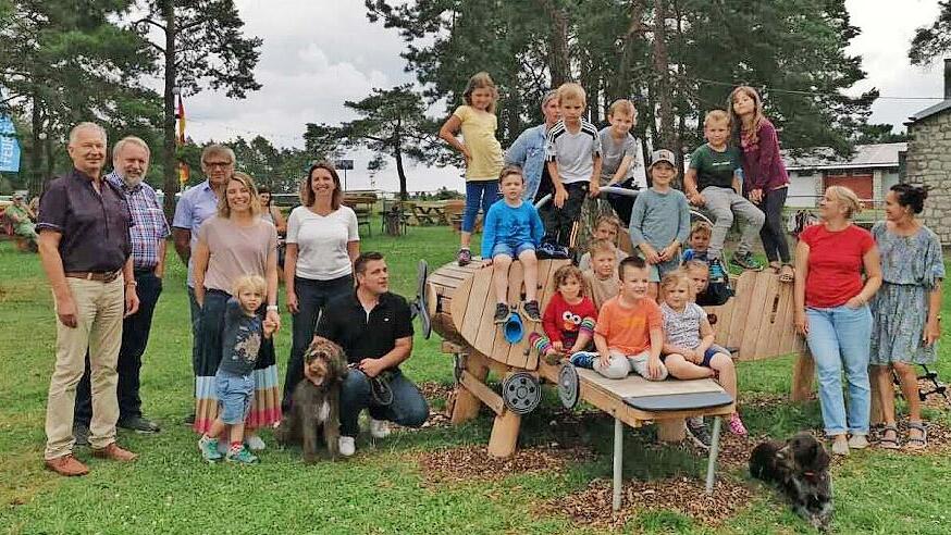 „Wir hatten schon lange den Wunsch, unseren Platz hier oben auf dem Feuerstein für die vielen Besucherinnen und Besucher attraktiver zu gestalten“, erklärt Franz Josef Kraus , der Vorsitzende des Vereins Fränkische Fliegerschule, „umso dankbarer sind wir, dass wir mit der Förderung durch die Ländliche Entwicklung nun hier ein themenspezifisches Spielgerät aufstellen konnten, das gut zu uns als Flugschule passt.“