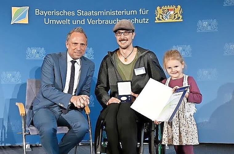 „Heute machen wir das unsichtbare Band zwischen Ihnen und der Natur sichtbar. Danke für Ihr großartiges Engagement! Sie sorgen für Umweltbildung mit Sternchen und machen Menschen glücklich“, lobte der Umweltminister den Preisträger, den er vor viereinhalb Jahren persönlich kennengelernt habe.