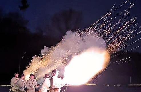 Die Böllerguppe des Schützenvereins Buckenhofen beim Salutschuss.