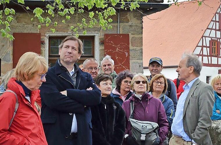 Am Rathaus in Kunreuth ging es los: Wo sich heute ein schmucker Sandsteinbau befindet, stand früher das Badhaus, erklärte Landrat Ulm. Heute finden hier nicht nur die Gemeinderatssitzungen statt, das Haus ist auch ein beliebter Veranstaltungsort für Kunsthandwerkkurse.