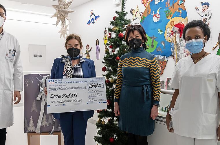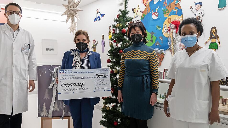 „Es ist inzwischen gute Tradition, dass wir in der Adventszeit die Einkäufe unserer Kundinnen und Kunden auf Wunsch als Geschenke verpacken“, erläuterte Andrea Reuter, „dafür bitten wir um eine Spende zugunsten der Erlanger Kinderonkologie .“ Manch einer habe nur zehn Cent gegeben, eine andere habe dafür großzügig einen Geldschein in den gläsernen Sammelbehälter geworfen, der sich mit jedem Tag gut sichtbar immer mehr gefüllt habe. „Besonders rührend ist es immer, wenn Kinder vorbeikommen und zum Beispiel ihr Taschengeld spenden“, berichtete Andrea Reuter, „ich möchte einfach allen Kindern eine Freude machen. Gesunde Kinder, die in der Vorweihnachtszeit in meinen Laden kommen, erhalten ein Nikolauspäckchen. Und den kranken Kindern bringen wir nun etwas in die Klinik.“