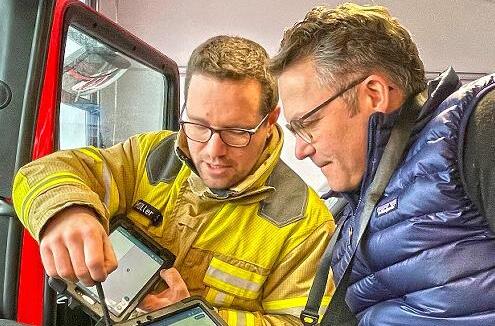 Mit den Tablets haben künftig die Führungskräfte auf zwei Feuerwehrfahrzeugen die Möglichkeit, die relevanten Daten im Einsatz (Anfahrtsroute, Hydranten, weitere mitalarmierte Kräfte) einzusehen. Weitere Optionen werde man Stück für Stück ergänzen.